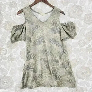 Democracy Cold Shoulder Blouse Leaves Printed Women's L