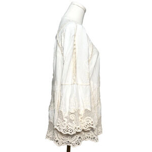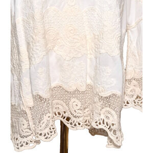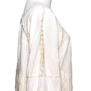 Democracy Cream White Embroidered Lace Open Sleeve Boho Bell Sleeve Top Large Peasant