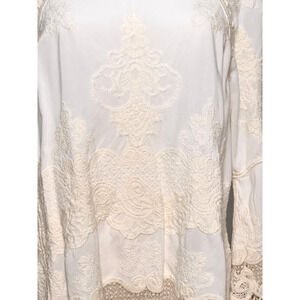 Democracy Cream White Embroidered Lace Open Sleeve Boho Bell Sleeve Top Large