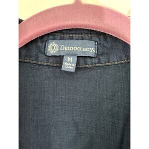 Democracy Denim Shirt. This stylish and comfortable denim shirt is perfect for any casual occasion. Made from high-quality denim, it features a classic button-down design with a modern fit. Whether you're dressing up for a night out or keeping it casual on the weekend, this Democracy denim shirt is a versatile addition to your wardrobe.