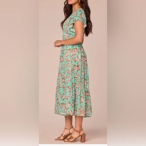 Add a vibrant, fun print to your look! With short double flutter sleeves, a flattering V-neck, a flowy tiered skirt with a smocked waist, and side pockets, this mwoven dress is perfect for embracing easygoing elegance all season long.