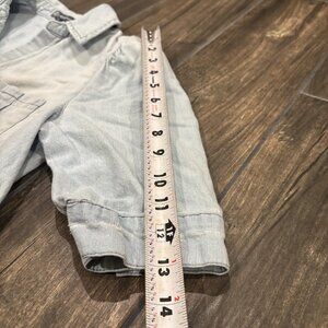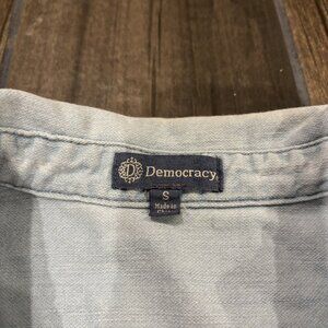 Democracy Elbow Puff Sleeve Button Down Washed Blue Denim Shirt Small (123)