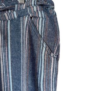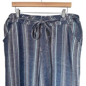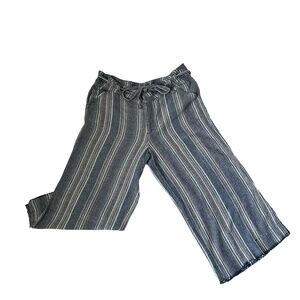 Democracy "Flex"-Ellent Womens Sz 14 Wide Cropped Pants Striped Linen Blend Blue