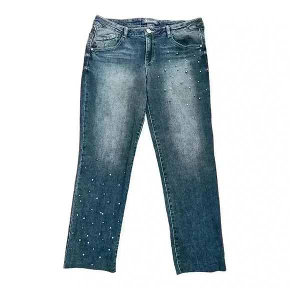 Democracy Flex-ellent Raw Hem Cropped Jeans Medium Wash Pearl Accents Women’s 10