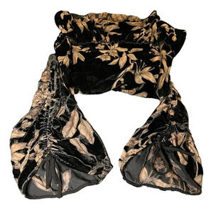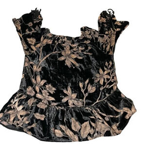 Democracy Floral Velvet Blouse Women's Small Black/Brown Sheer Goth Bell Sleeve