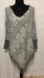 Wrap yourself in cozy, effortless style with this Democracy gray knit poncho sweater. Designed with a beautiful soft-gray and cream woven pattern, it features an elegant draped silhouette with a pointed hemline and playful fringe detail for that perfect boho-chic finish.