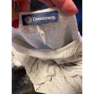 This Democracy Gray Top in size L is a loosely fitted, lightweight piece featuring a waffle texture and stylish butterfly sleeves. Perfect for casual wear.