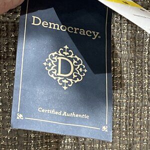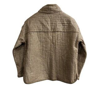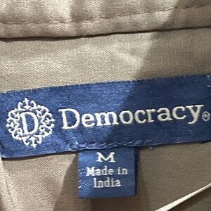 Democracy Jacket Womens M Taupe Gold Woven Jacquard Quilted Blazer Office Casual