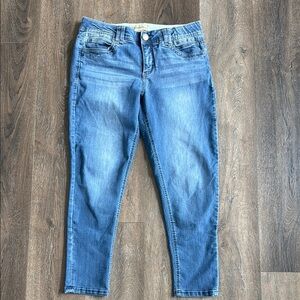 Democracy Jean. Women’s size 10. Great stretch! Inseam measures approximately 25.5”. Rise measures approximately 9.5”. Waist measures approximately 16.5”. These are in excellent used condition! Very cute style!