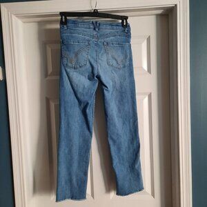 Democracy Jeans Womens 4 Ab Solution Girlfriend Mid Rise Raw Hem Slouchy Shaping. Condition is pre-owned, jeans are gently used. Wear cuffed or uncuffed. Tag size 4, see photos for approximate waist, rise, and inseam measurements.  Thanks for taking a look!