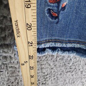 Democracy Jeans Womens 6 Blue Floral Embroidered Stretch Denim Frayed Hem