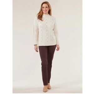 Get ready for fall and winter with this cozy sweater! This Democracy Long Roll Cuff Sleeve Funnel Neck Cable Popcorn Stitch Sweater is brand new and ready to wear.