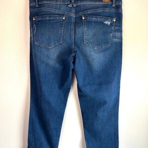 Stylish cropped jeans with a distressed look. Perfect for everyday wear. Comfortable and chic.