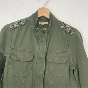 Democracy Military Utility Jacket Woman XS Army Green Embroidery Zip Pockets