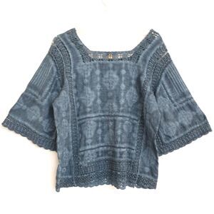 Democracy Mineral Wash Blue Top Size Small Kimono Sleeves Cotton