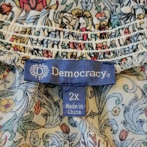 Democracy Multi Color Floral Pattern Smocked Button Down Blouse Size 2X