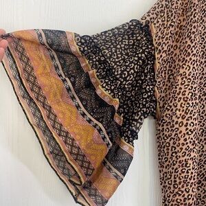 Sleeves have ruffles animal print throughout cardigan