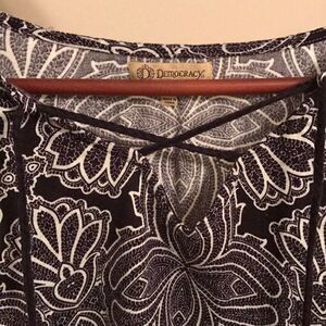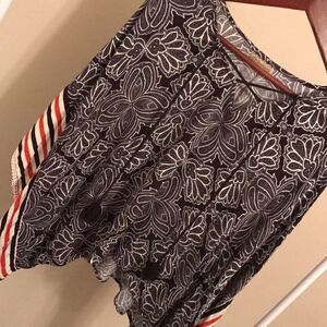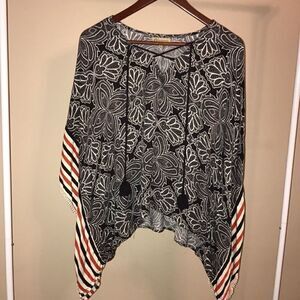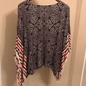 Democracy Dark Navy and White Print Poncho Size Small Drawstring at Neck with Tassels