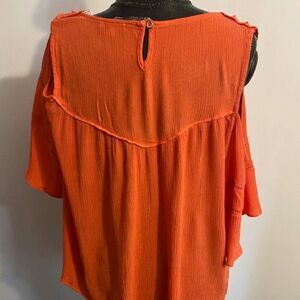 Democracy Orange Lace bodice cold shoulder top, size XL (100% Rayon)