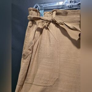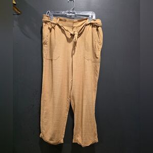 Democracy Pants Womens 14 Tan Crop Cuffed Ankle High Rise Waist Tie Rayon
