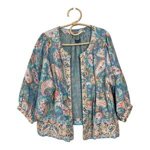 Democracy Plus Size Paisley Print 3/4 Sleeve Reversible Open-Front Jacket NEW