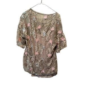 Democracy Ponte Pants Women's Large Black Rayon Stretch Floral Lace 3/4 Sleeve.