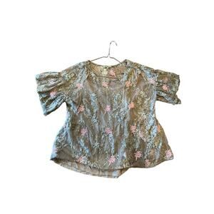 Democracy Ponte Pants Women's Large Black Rayon Stretch Floral Lace 3/4 Sleeve