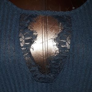 Democracy Ribbed Knit Layered look Top with Lace keyhole collar, Sleeve cuff Split, Dark Green, new with tags. Size 2X. (PMA-040)