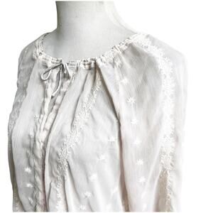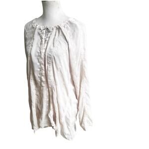Democracy Sheer Pink Peasant Blouse Size 2X Pale Pink Embroidered Floral Detail