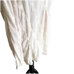 The Democracy Sheer Pink Peasant Blouse in size 2XL is a stylish and feminine top perfect for various occasions. Made from a blend of polyester and cotton, this blouse features beautiful embroidered floral detail on a pale pink solid background. With a round neckline, long balloon sleeves, and a pullover closure, this tunic-style blouse is ideal for travel, parties, or casual wear during the summer, fall, or spring seasons. Sheer accents add a touch of elegance, making it a versatile addition to any woman's wardrobe.