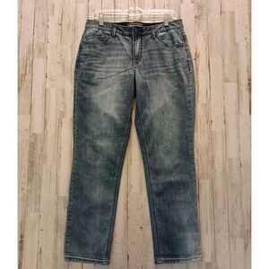 Democracy Size 10 Jeans Ab Solution Girlfriend Straight Ankle Distressed Denim