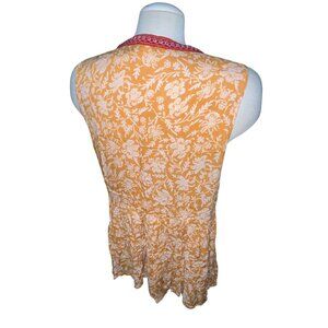 Democracy Sleeveless Boho Floral Top With Red Embroidery Trim Sz Large Womens
