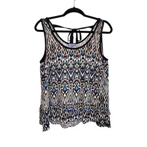 Democracy Sleeveless Ruffle Hem Tie-Back Ikat Print Blouse Women's Size L Multicolor
