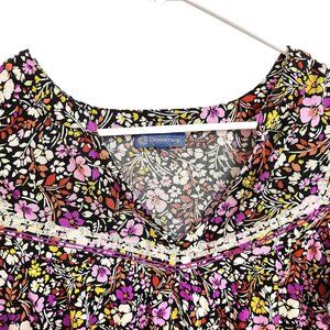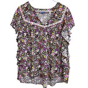 Democracy Split V-Neck Floral Print Blouse Short Flutter Sleeves and Side Sz 2X