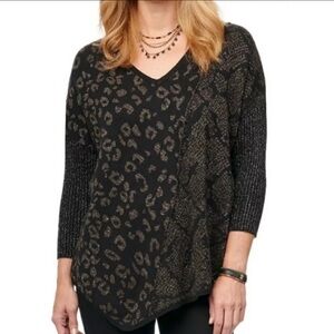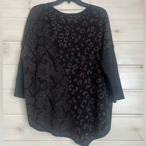Democracy Sweater Size M Metallic Asymmetrical Animal Print Lightweight NWT