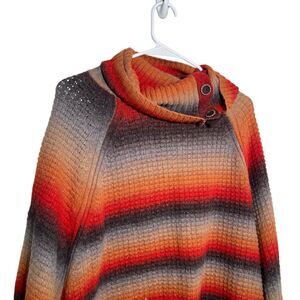 Democracy Sweater Women's S/M Knit Striped Poncho Cowl Neck Pullover Boho