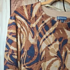 Democracy Swirl Pattern Brown and Blue Sweater Plus Size 1X