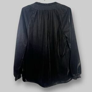 Democracy Sz Small Black Velvet Smock Neck Blouse Top Long Sleeves Holiday Party