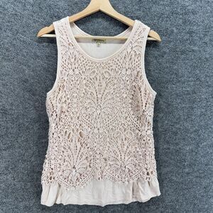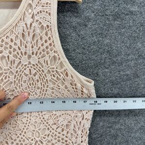 Democracy Tank Women L Large Beige Geometric Crochet Sleeveless Wide Strap Rayon