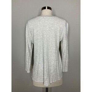 Democracy Top Women Large Light Gray Ribbed V-neck 3/4 Sleeve Drawstring Tie