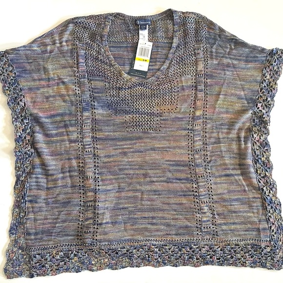 Democracy V-Neck Regular Size S/M Sweater Women's Multicolor Crochet Trim, NWT