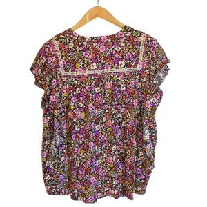 Democracy V-Neck Ruffle Flutter Sleeve Multicolor Floral Blouse | Size 2X