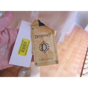 Democracy White Peasant Blouse w Floral Embroidered Sleeves & Tie Cuffs Medium