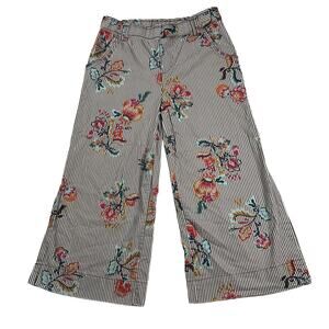 Democracy Wide Leg Raw Hem Cotton Pinstripe Floral Summer Pants Size 6