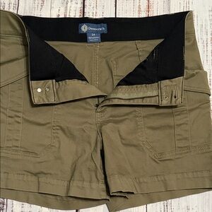 Like new Stylish Democracy Ab solution olive shorts with large front pockets and dual button/zipper closure in perfect condition. Perfect for everyday comfort.
