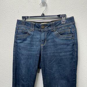 Keywords: Democracy jeans, women's jeans, ankle jeans, blue denim, stretch denim, Ab Technology, medium wash, casual wear, mid-rise jeans, pre-owned jeans.