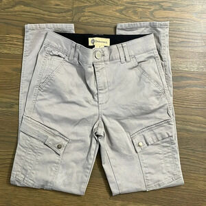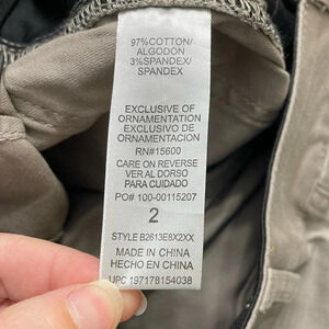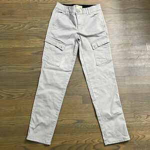 Very good pre owned condition with a faint stain on the front right leg near the pocket area- see pictures for more details. All pictures are of actual item for sale