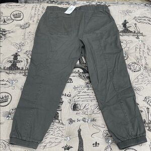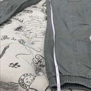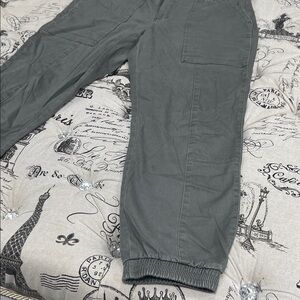 Comfortable olive cargo pants with multiple pockets. Ideal for casual wear.