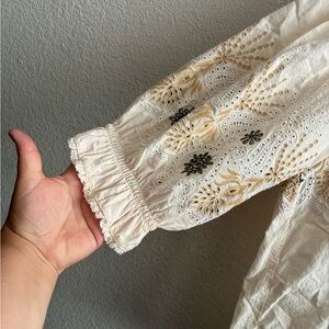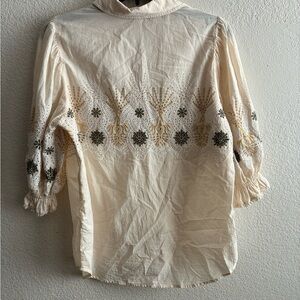 Democracy Women's Beige Embroidered Button Down Shirt S