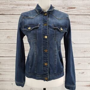 Democracy Women's Blue Button Front Pockets Denim Jacket Size XS